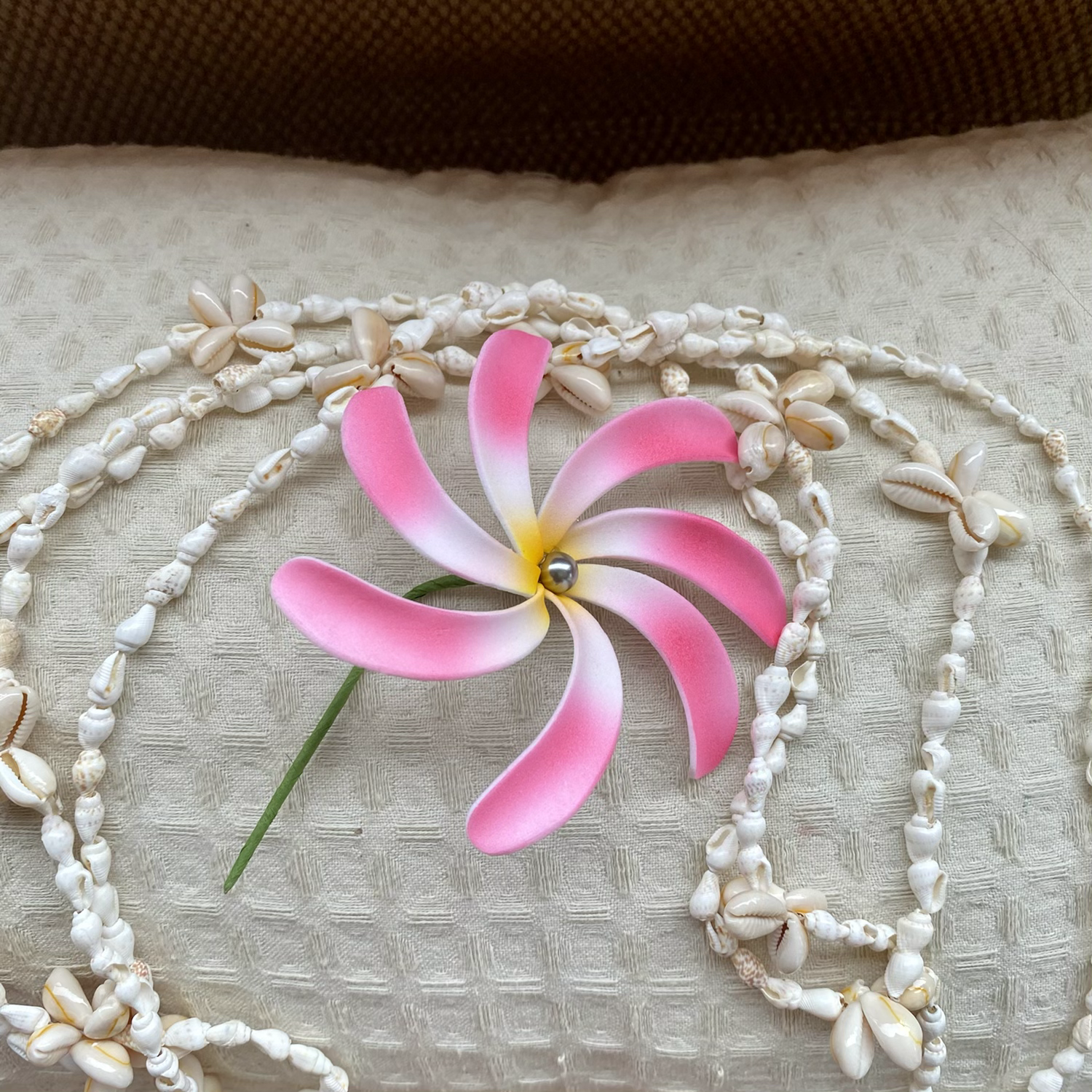 Tiaré dégradée rose, avec ou sans perle décorative.