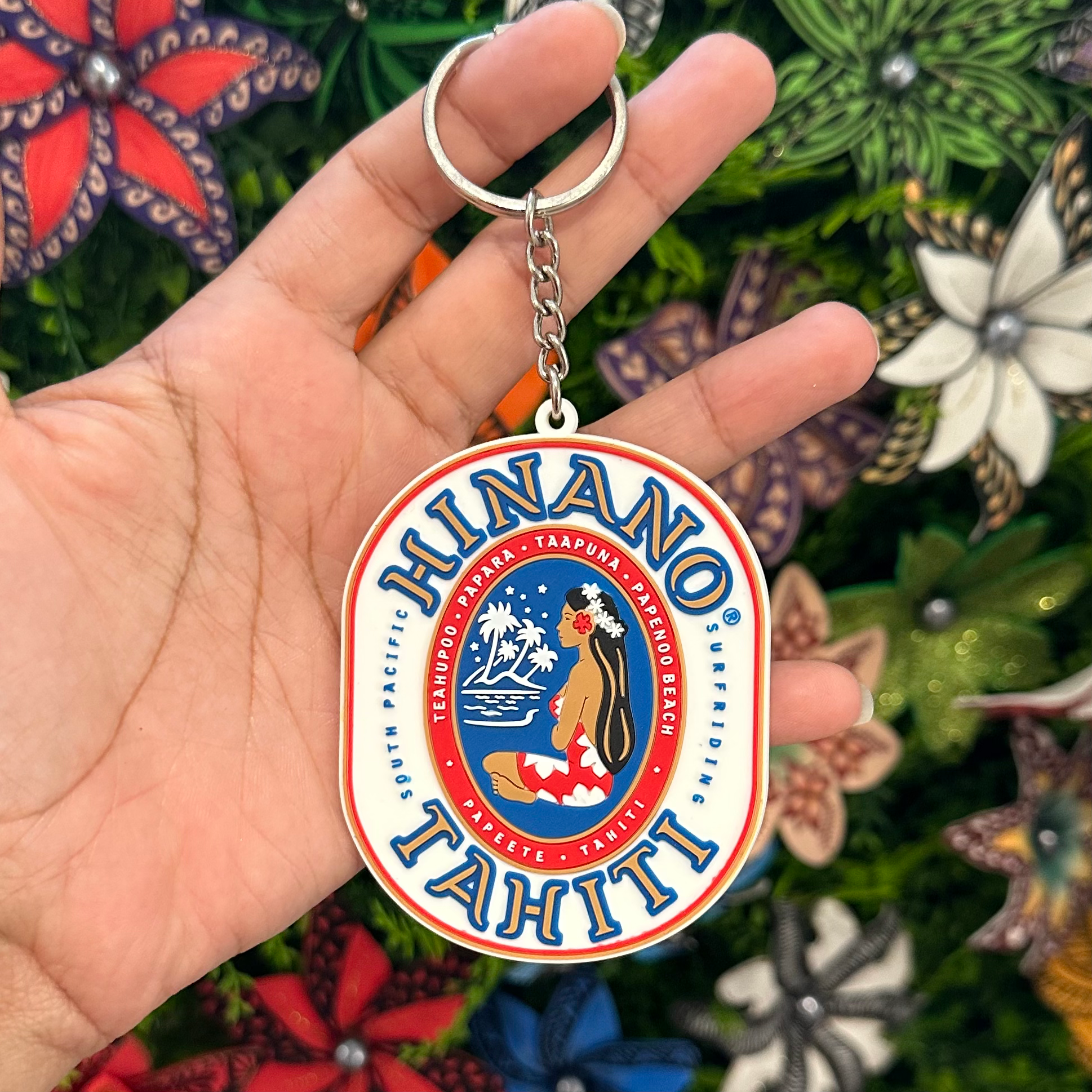 Porte-clé vahiné en silicone, de la marque Hinano.