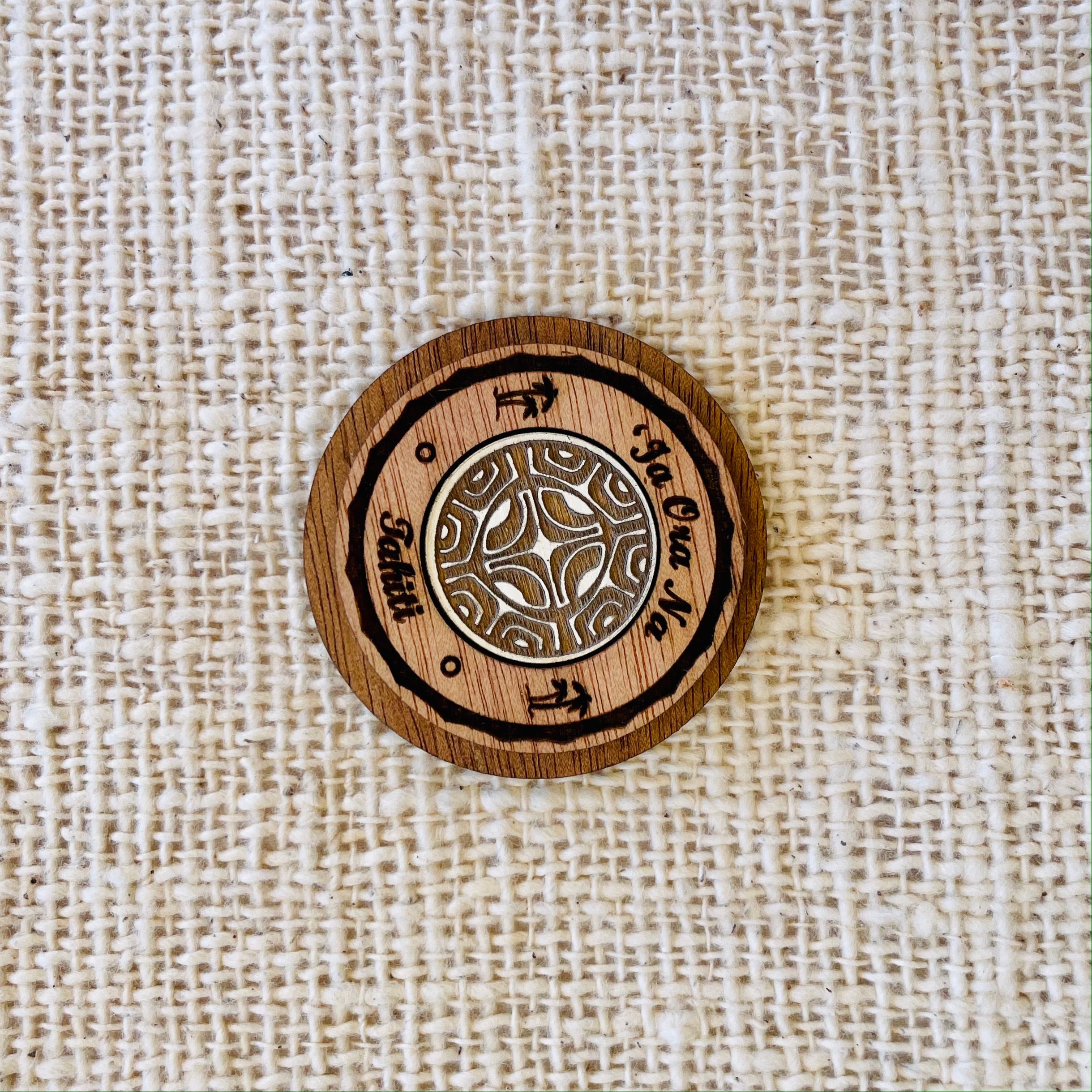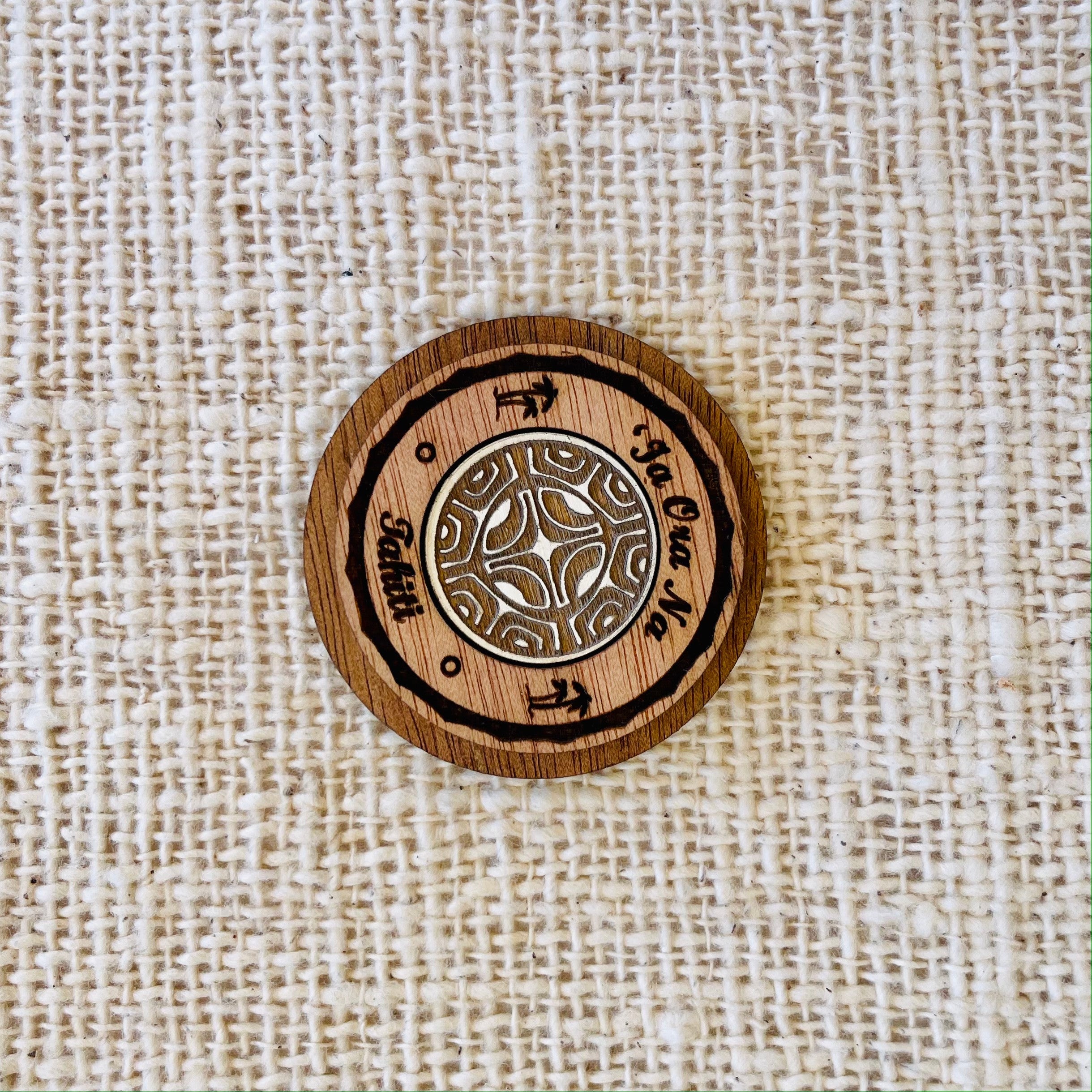Magnet rond - Ia ora na Tahiti - Bois gravé
