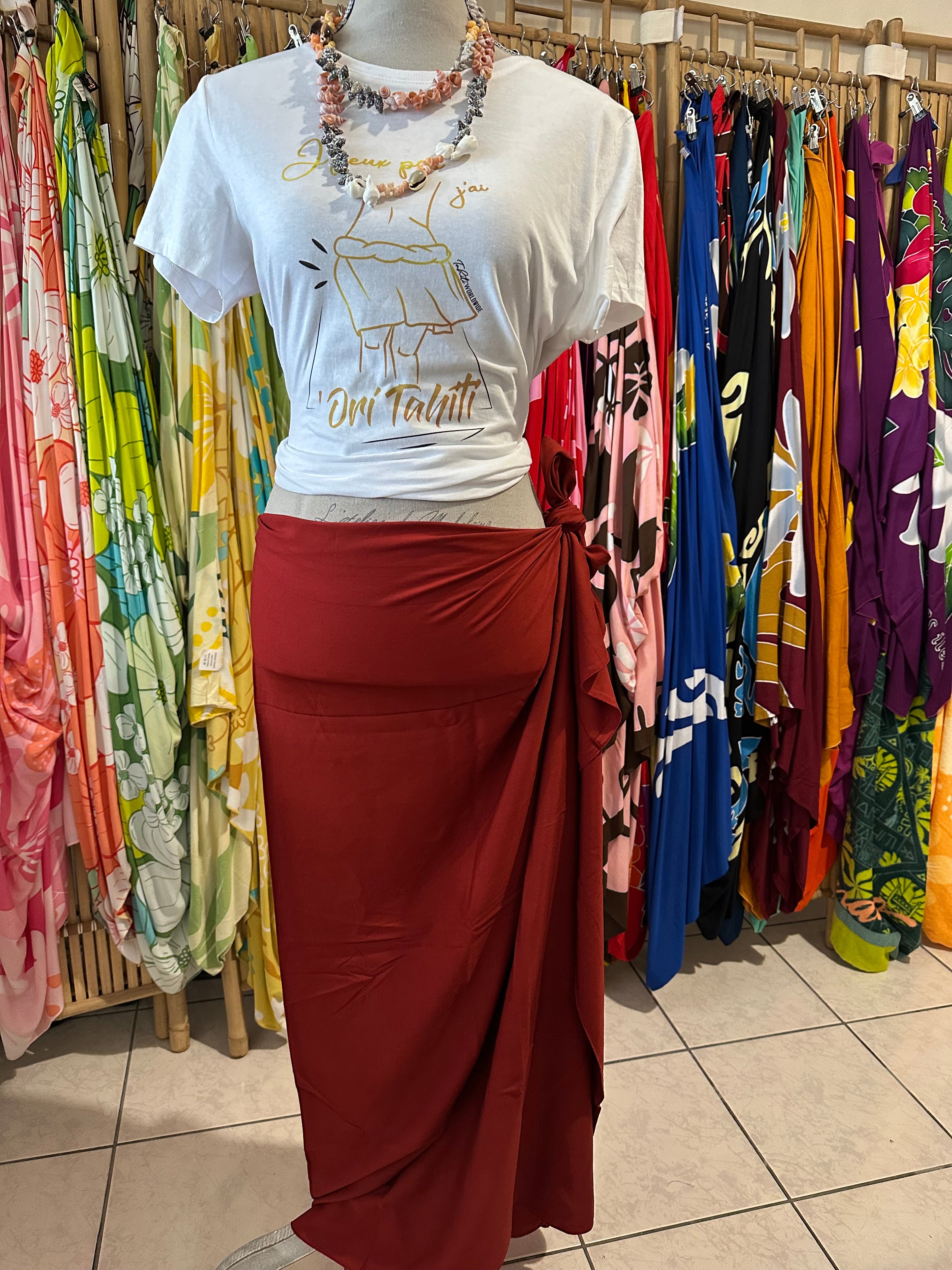 Enfin de retour sur Tahiti à la Réunion, le paréo long rouge !