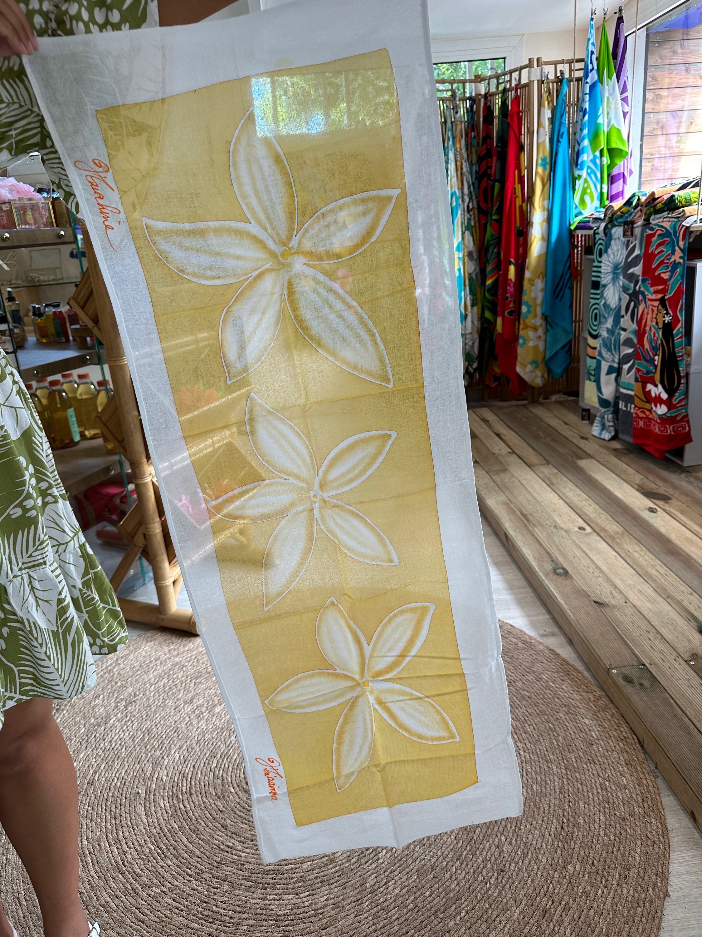 Mini Paréo fait main Huahine en Polynésie française. La peinture utilisée est fabriquée à base de pigments naturels sur l’île de Moorea.